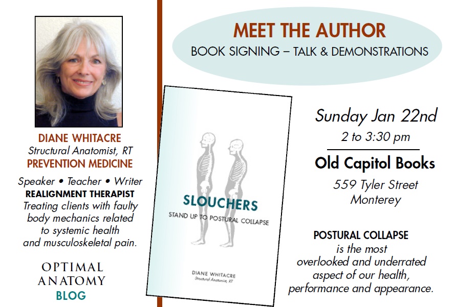 Sunday 22 January 2017, 2pm: Realignment therapist and author, Diane Whitacre, will be visiting Old Capitol Books to discuss her research and her work on structural anatomy, the coming together of proper alignment and good health.