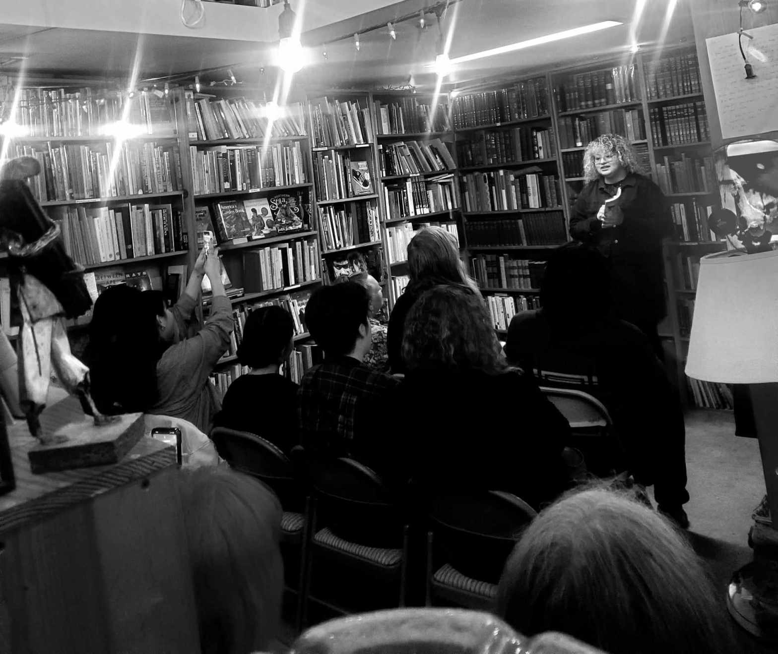 Heather Flescher is a disabled trans activist who has taken part in poetry events at Old Capitol for over a decade. She has published two books, “One Foot on the Ground” and “Another Crazy Trans Woman”, and is currently working on a third with a tentative title of “Charmed to the Teeth”. She would like to thank her community of beloved friends, artists, radicals, teachers, warriors and healers, without whom she would not exist.